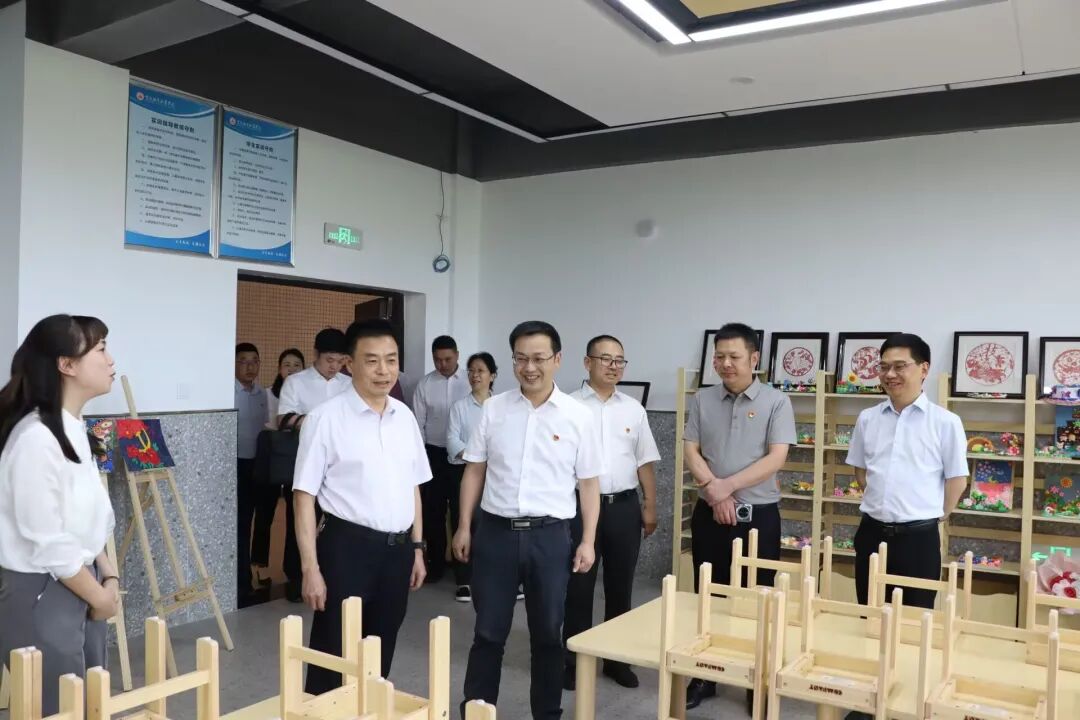 何平一行观看主题教育展板,考察陈志军国家级技能大师工作室、信息与智能制造公司全国党建工作样板支部、bevictor伟德官网学前教育专业实训室、党建阵地情况。在调研过程中,何平不时就主题教育、人才培养、员工就业等工作情况与有关领导和工作人员进行互动交流。