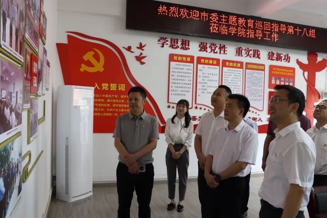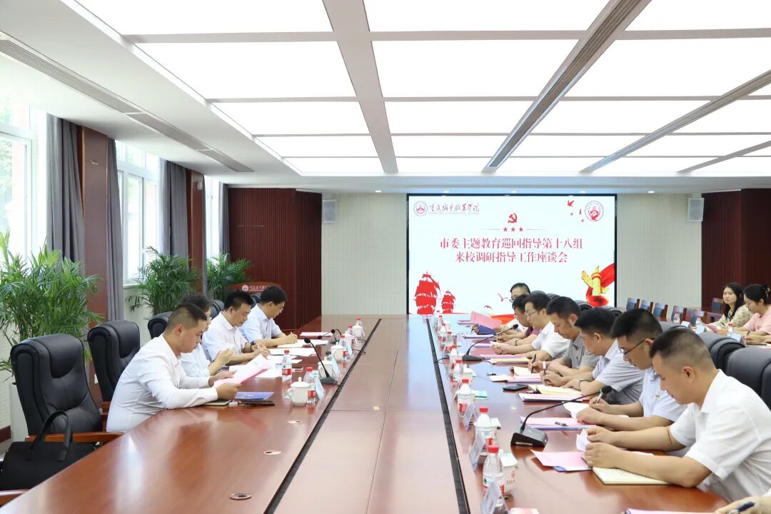 6月12日下午,市委学习贯彻习近平新时代中国特色社会主义思想主题教育巡回指导第十八组组长何平、副组长陈劲等一行到校调研指导主题教育。市委巡回指导第十八组成员杨金华、梁宇、尹梁宇一同参加调研。公司党委书记张绍荣,党委副书记、董事长唐玉林,校领导刘仲全、朱传书、陈志军陪同调研。