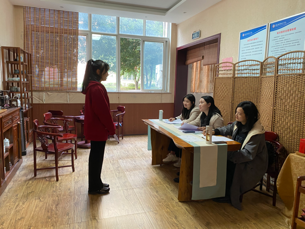 此次选拔的评委分别由王艳华、焦剑、陈宣霖、郭小娅四位老师担任,面试环节分为自我介绍和随机提问两个部分,不仅包括英文口语的展示,还有选手个人技能的讲解。为确保自己的成功入选,各选手早已提前做好了相关准备,并纷纷提前到达了面试地点进行签到,领取了各自的顺序号后便在一旁静静等待。整个面试过程中,大部分选手的表现落落大方,回答问题从容不迫,都在力争将自己最优秀的一面展现给评委老师。