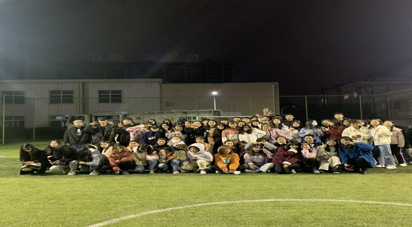 2020年11月26日晚上7:30,19文秘2班和20级会计6班在足球场开展主题为“让学习生活在团建中绽放光芒”的团建联谊活动。参与此次晚会活动的同学们活力四射,活动气氛活跃,掌声连连,阵阵欢呼声响遍整个足球场,意义非凡。